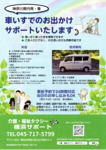 この度、福祉タクシーサービスを始めました。日常生活の中で移動にお困りの方々に、安心してご利用いただけるタクシーサービスを提供いたします。